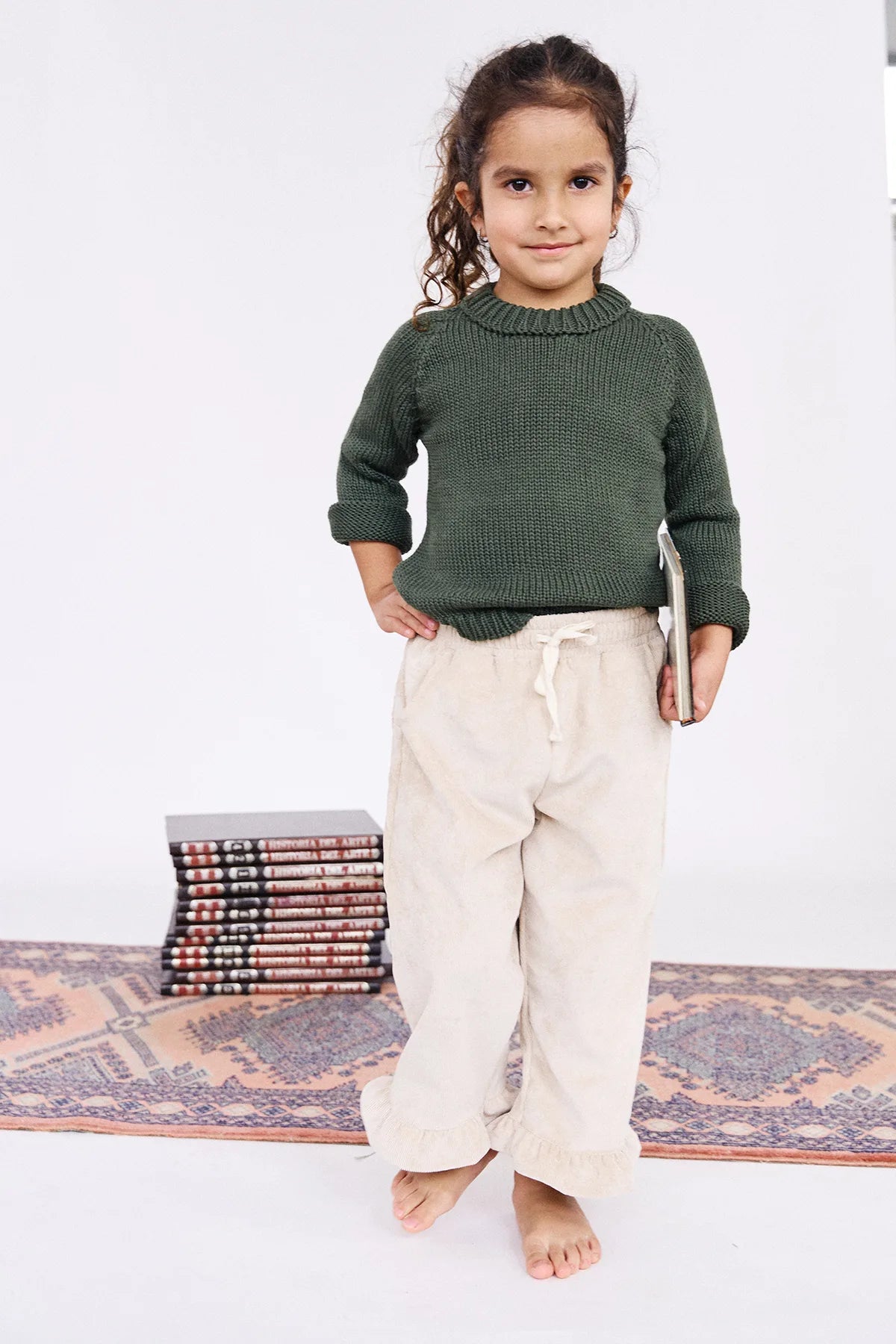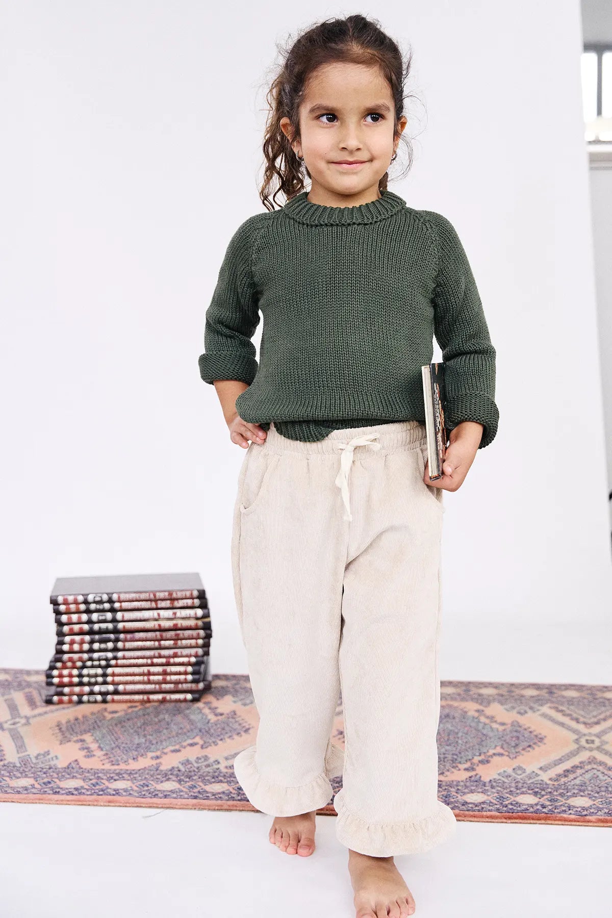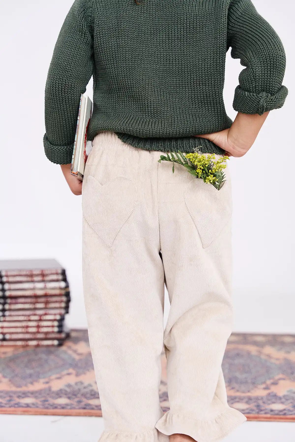 Pantalón en cordoroy con bolsillos posteriores en forma de corazón, prenda escencial en armario de tu hija. Su estilo y diseño comfy logran que sea la prenda ideal para salir de paseo y al mismo tiempo algo formal como bautizos y pajesitos.