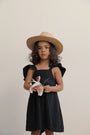 Vestido corto con escote cuadrado y mangas con boleros, perfecto para llenar de comodidad y delicadeza los momentos especiales de las más pequeñas de la casa. Sistema de cierre con botones en la espalda que facilitan el momento de vestir.
