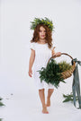 Vestido Toya, corto con escote redondo y mangas con boleros, perfecto para llenar de comodidad y delicadeza los momentos especiales de las más pequeñas de la casa. Sistema de cierre con tirantes en la espalda que facilitan el momento de vestir.