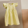 Vestido Toya, corto con escote redondo y mangas con boleros, perfecto para llenar de comodidad y delicadeza los momentos especiales de las más pequeñas de la casa. Sistema de cierre con tirantes en la espalda que facilitan el momento de vestir.